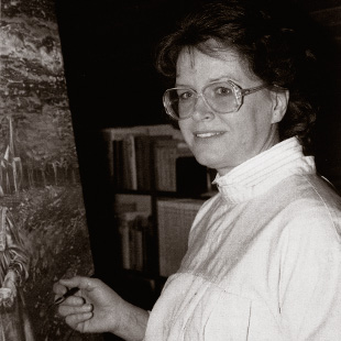 in denen sie das Antlitz ihres jeweiligen Modells als "Gesichtslandschaft" auffaßt. Sie ist ebenfalls Malerin poetisch-realistischer Bilder von starker
